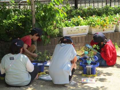 「葉っぱがいっぱいある。」「もう花が咲いてるなぁ。」と、しっかり観察もしていました。