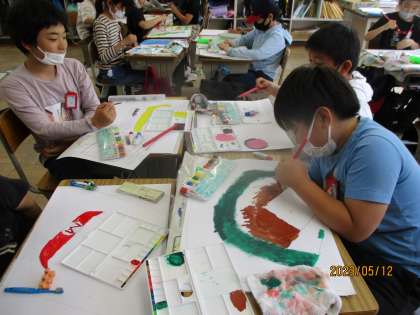 図画工作科の学習では「わすれられない気持ち」を絵に表す学習をしています。