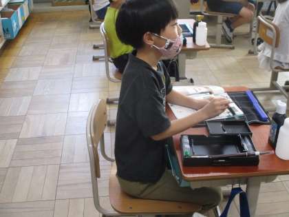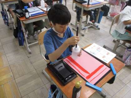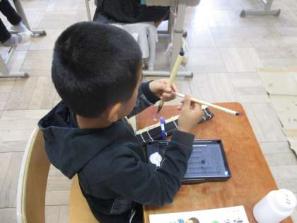 初めての毛筆の学習がありました。用具の名前や、準備・片付けの仕方を学びました。