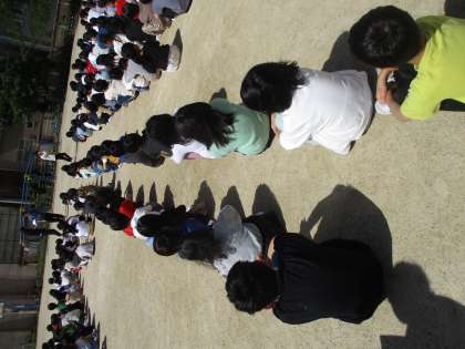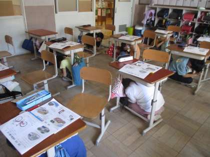 今日の5時間目は避難訓練でした。地震が起こった時に安全に避難できるように学習しました。
