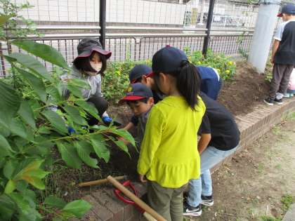 今日は、サツマイモの苗をじっくり観察し、学年みんなで畑づくりをして苗を植えました。畑づくりもとても楽しかったようで、頑張って活動していました。これからの成長が楽しみです。