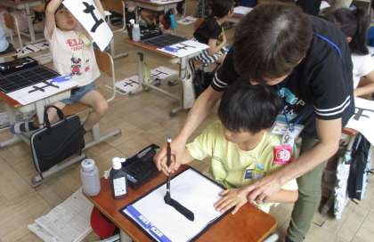 今日はたて画の筆づかいを学びました。みんな一生懸命に取り組んでいました。