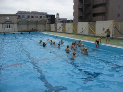 梅雨空の中ですが、子どもたちはみんな元気に水の中で活動しています。