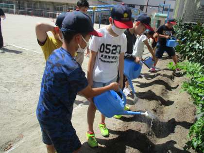 大根について教えてもらったあとは実際に種まきをしました。
