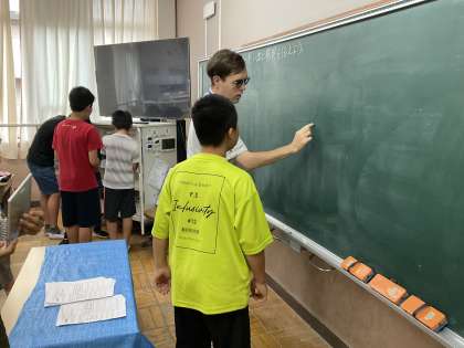 今まで学習した英語を使って、ALTとコミュニケーションをとっています。ちょっとドキドキ。