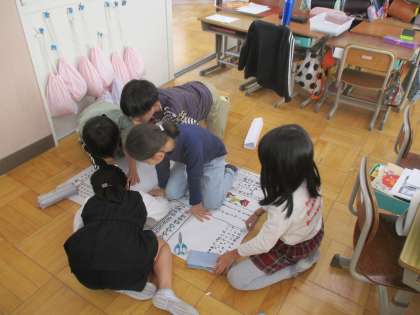 17日の学習発表会に向けて、グループで準備を進めています。クイズを作ったり、新聞にまとめたり、思い思いの発表をつくり上げてきています。