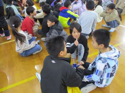 校長先生のお話を聞いた後、お友だちの良いところを互いに伝え合いました。
