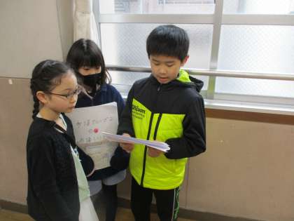 学習発表会にむけてグループで調べてきたことの発表練習を頑張っています。