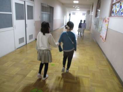 お話しを聞いた後は、アイマスクをしたお友達を手引きする体験をしました。