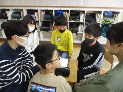 友だちの話を話を聞き,話をつなぎ,グループで一つのお話を作りました。