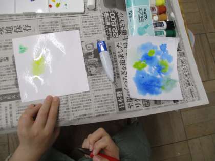 図画工作科の学習で自分の気持ちを色や形など工夫して表しています。楽しい気持ちは明るい色、この形はこんな気持ち・・・などと思い思いに作品に表していました。さすが高学年という工夫がいろいろと感じられました。
