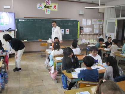 外国語の学習で「天気」と「遊び」を伝え合う活動をしています。
