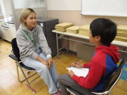 初めて経験する1対1のインタビューとあって、6年生は皆とても緊張していました。