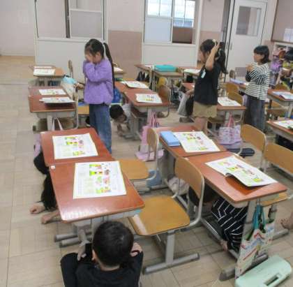 音楽の時間に歌いました。実際に隠れてみたくなった子どもたち。