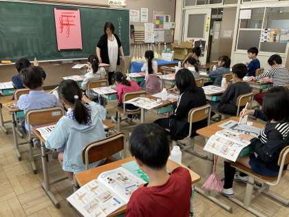 書写の学習では、水書を行いました。
