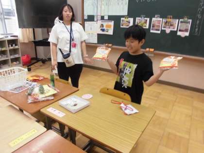 買い物してきたものを教室でみんなで見あいました!
