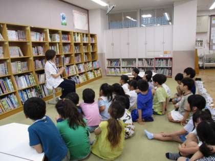 図書館司書の富森先生に読み聞かせをしてもらいました。