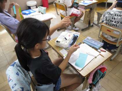 家庭科の学習では,裁縫セットを使って小物づくりにチャレンジしています。