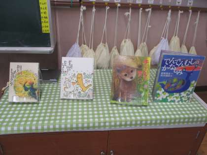 教室の前には「新美南吉」が書いた本を置いてもらっています。