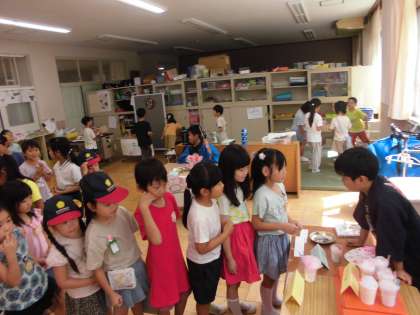 今日は交流学級のお友達を招いて「夏祭り」を行いました。