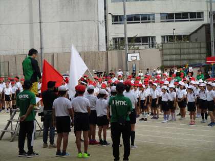 運動会が始まりました。開会式では応援団長の選手宣誓の後、運動会の歌をみんなで元気に歌いました。
