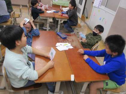 欲しい野菜を伝える言い方を使ってゲームをしました。楽しみながら英語の言い方もおぼえることができました。