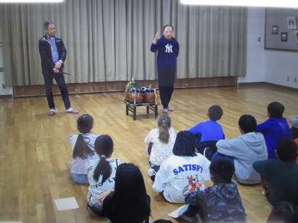 今日は、実際に演奏してみようと六斎会の方に来ていただき、教えてもらいました。