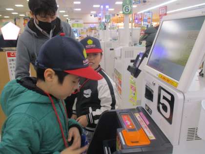 材料の場所をお店の人に聞いたり、レジの操作を自分でしたする経験に子どもたちは真剣に取り組んでいました。