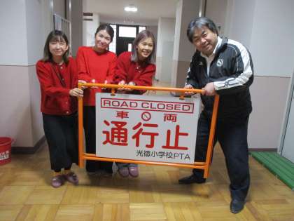 12月から本校東側の坊城通が児童の登校時間(8時から8時30分)通行止めとなりました。以前から子どもたちの安全のために声が上がっていた通行止めが可能となり、大変うれしく思います。ご理解いただいた地域の皆様、ありがとうございました。PTAからは通行止めの看板を寄贈していただきました。誤って侵入しようとする車両にもすぐ気づいてもらえそうです。ありがとうございました。
