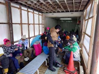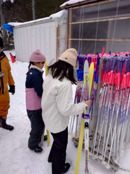 靴を履いて、板を取って、いよいよ滑るぞ!