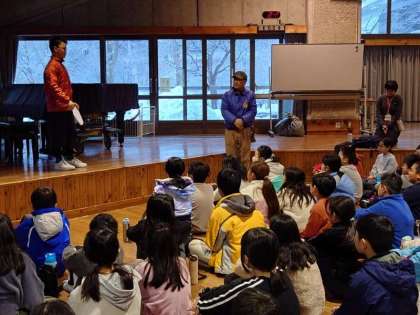 八瀬小学校のお話を聞いたり、光徳小学校のことを紹介したりしました。
