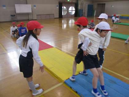 すもうの運動にずいぶん慣れてきました。行司役も、上手にできるようになりました。