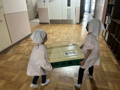 給食当番の様子です。