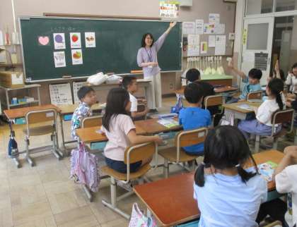 3年生からは、テキストを使っての学習で、気持ちも新たにいろいろな国のあいさつを話していました。