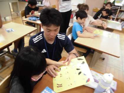 動物園の職員さんや京都女子大学の学生の方に来ていただいて、鳥について色々教えて頂きました。お話を聞いた後に自分のオリジナルのペンギンカードを作って楽しみました。色々なペンギンが出来上がりました♪