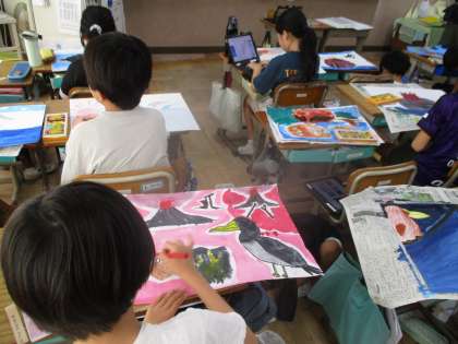 図画工作科の学習ではお話を聞いて絵に表す学習をしています。