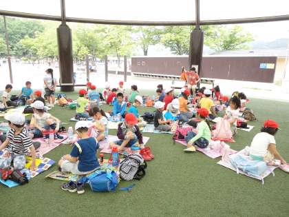 たくさん人がいましたが、子ども達は思い切り遊んでいました。お昼は2年生と一緒にグループごとに食べ、午後も2年生と一緒に遊びました。