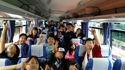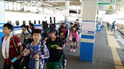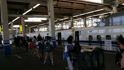 広島駅に到着しました。バスに乗り込み,平和公園に移動します。