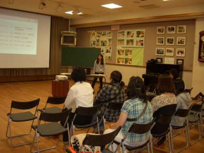 1年生の保護者の方々が対象です。最初に校内施設見学をし,続いて本校の栄養教諭 江頭より『京都市の学校給食について,また子どもの味覚の発達について』お話をさせていただきました。給食についての話を聞いた後は,1年生の給食の様子を参観し,最後に実際に給食を試食です。