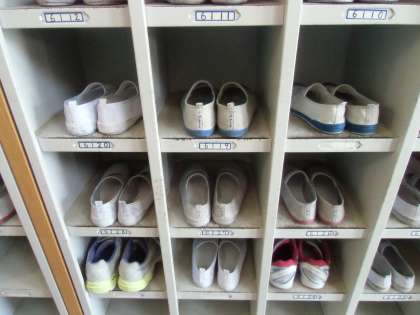 全校で環境を整える活動の一つとして,靴の片づけ方を考えました。靴箱の端に揃えておくと靴が飛び出したり,入れ間違えたりすることを防ぐことができると考え,取り組んでいます。低学年の子どもたちもずいぶん意識して入れることができるようになってきました。