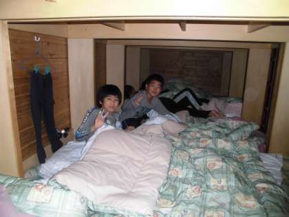 もう1枚は、ロッジでいよいよ寝るところの様子です。次の日に備えて、22時の消灯後は、はしゃいだり、しゃべったりすることなく、すぐに静かになりました。