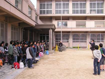昨日までの雨もあがり日射しを受けての出発式です。欠席者なし!