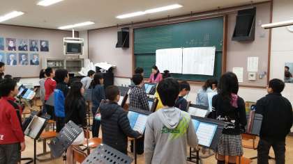 6年生の音楽の授業は,スクールサポーターの先生を中心に学習を進めてもらっています。