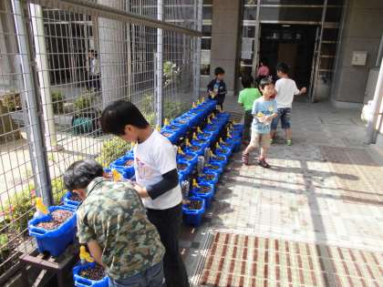 1年生 5月13日 あさがおの水やり