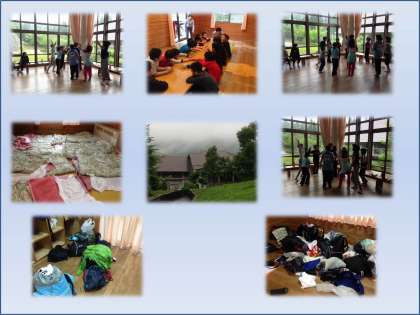 山登りから帰った後、すぐに入浴でした。外は雨が降っています。入浴が終わってから、5時30分の夕食まで2時間余りの時間があります。