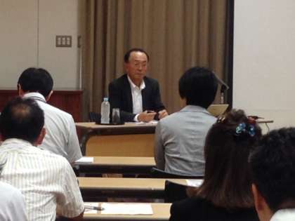 平成27年度4回目の研究授業です。今回の授業は文部科学省教科調査官の赤堀先生に来校いただき,「道徳授業で大切なこと」の講演などを聴きました。