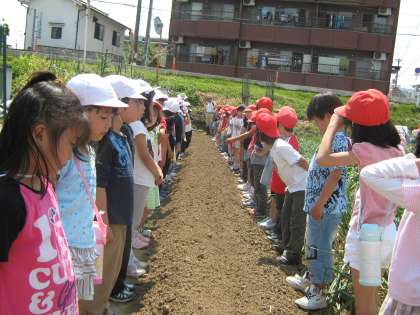 最初は,靴や服についた土を気にしていた子たちも,最後には生き生きした表情で畑の水やりのお手伝いをしていました。