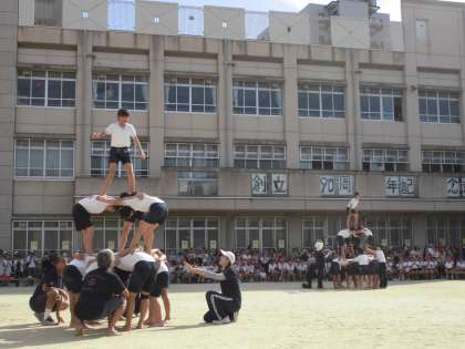 運動会。6年生は,毎年組体操をします。