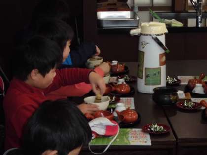 インストラクターの方に教えていただきながら抹茶を点てています。