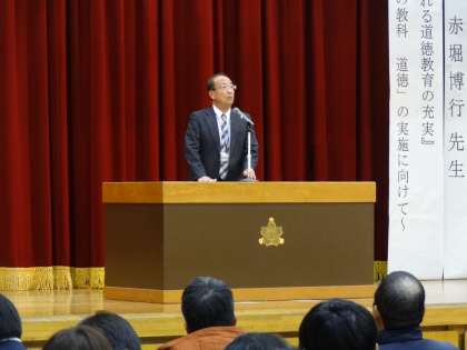 公開授業では,どのクラスも多くの方が参観され,赤堀博行先生の講演では,道徳教育の充実にはどうすればよいのか,参会者の皆さんは熱心に耳を傾けていました。